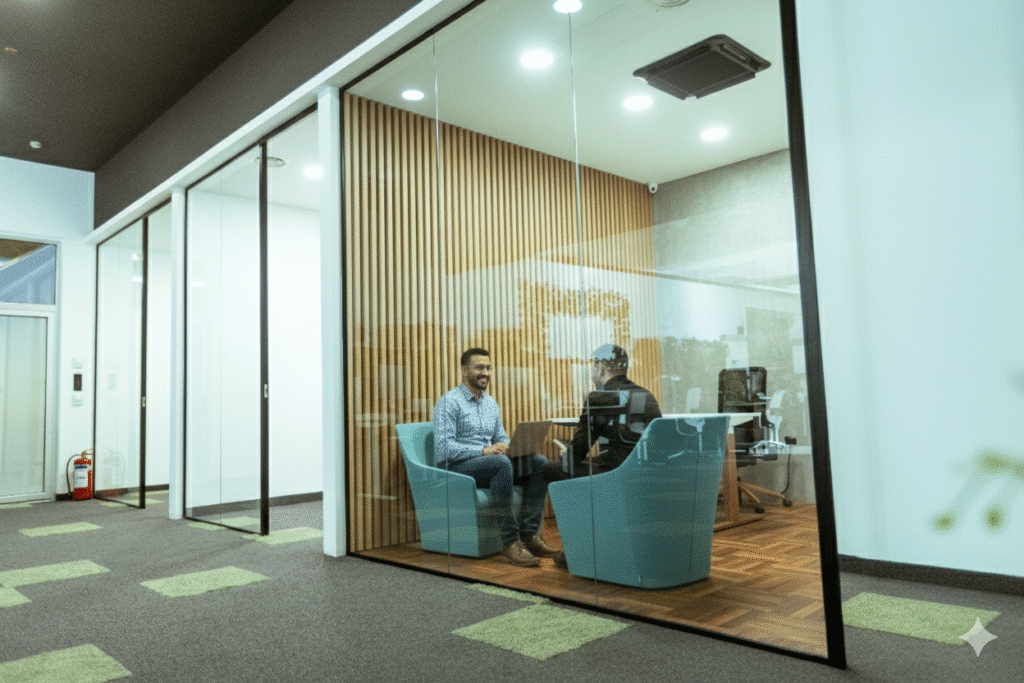Fully enclosed cabins crafted for individuals or small teams who need a quiet, secure, and distraction-free environment. Ideal for startups, founders, and teams who value focus and comfort.